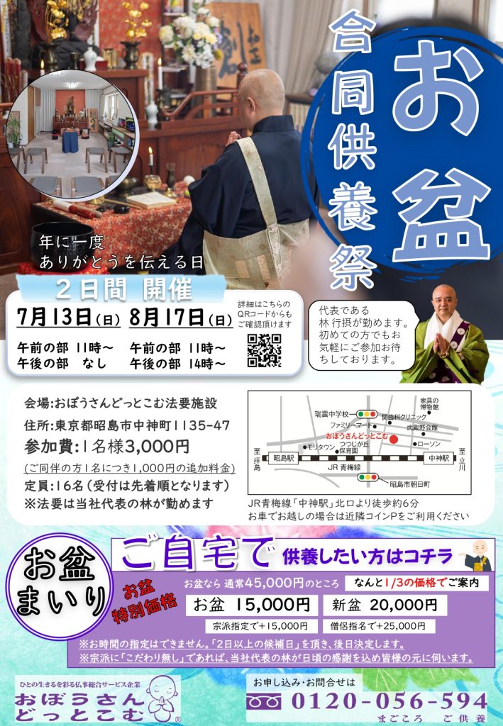 おぼうさんどっとこむでは、「お盆合同供養祭」を開催いたします。